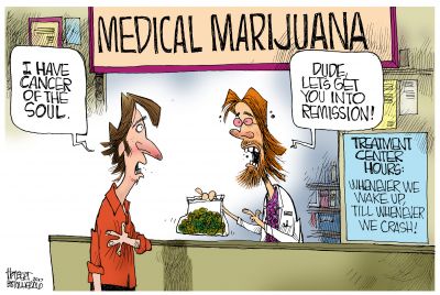 On the surface Question 3 is one of those feel-good measures that Bay Staters just love. Really, who would deny some terminally ill patient a little relief? Problem is this isn’t about terminally ill patients, it’s about an open-ended definition that includes “other conditions as determined in writing by a qualifying patient’s physician.” Depression? No problem. How about migraines, fibromyalgia? Whatever.