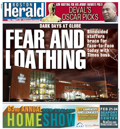 Crosstown at the stately local broadsheet meanwhile, Globe columnist Kevin Cullen has a message for the Heraldniks: