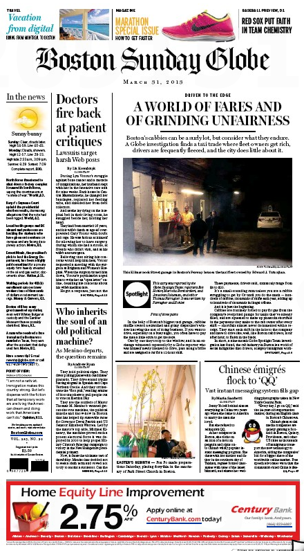 Both Sunday dailies have reports on the Boston taxicab industry, and the difference between them tells you all you need to know about the two news organizations.