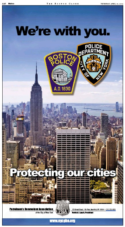 3. […] Thursday the hardreading staff noted that the City of New York Patrolmen’s Benevolent Association ran a “We’re with you” […]