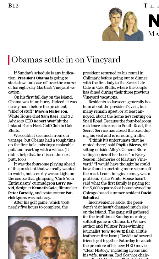 7 Responses to Hell to the Chief for Vineyard Vacay