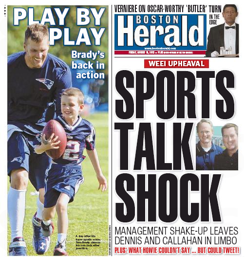 The local dailies turn a quick double play today in their coverage of the shakeup at former sportstalk powerhouse WEEI.