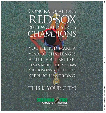 Mohegan Sun, Bank of America, Gosling’s Rums (“Official Rum of the Red Sox” – who knew?), Sullivan Tire, Budweiser, Fidelity, TD Garden, The Beaches of Fort Myers and Sanibel, Museum of Fine Arts, jetBlue, People’s United Bank