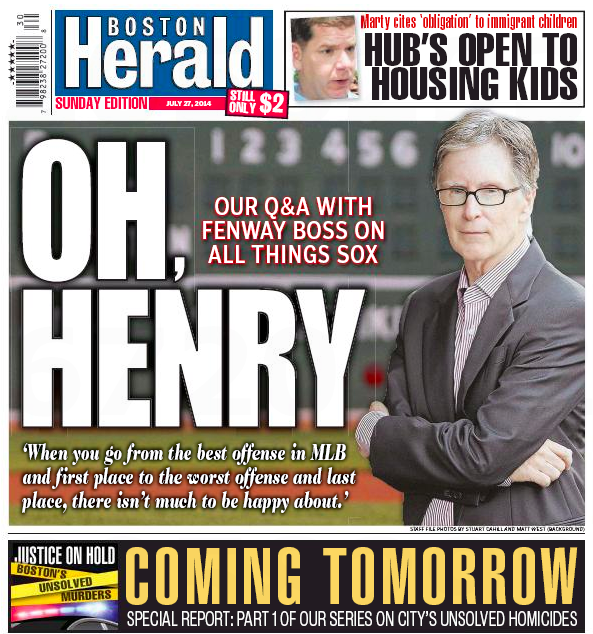 The Boston Herald’s Michael Silverman got an email interview with Boston GlobeSox owner John Henry, which, of course, was Page One news for the feisty local tabloid.
