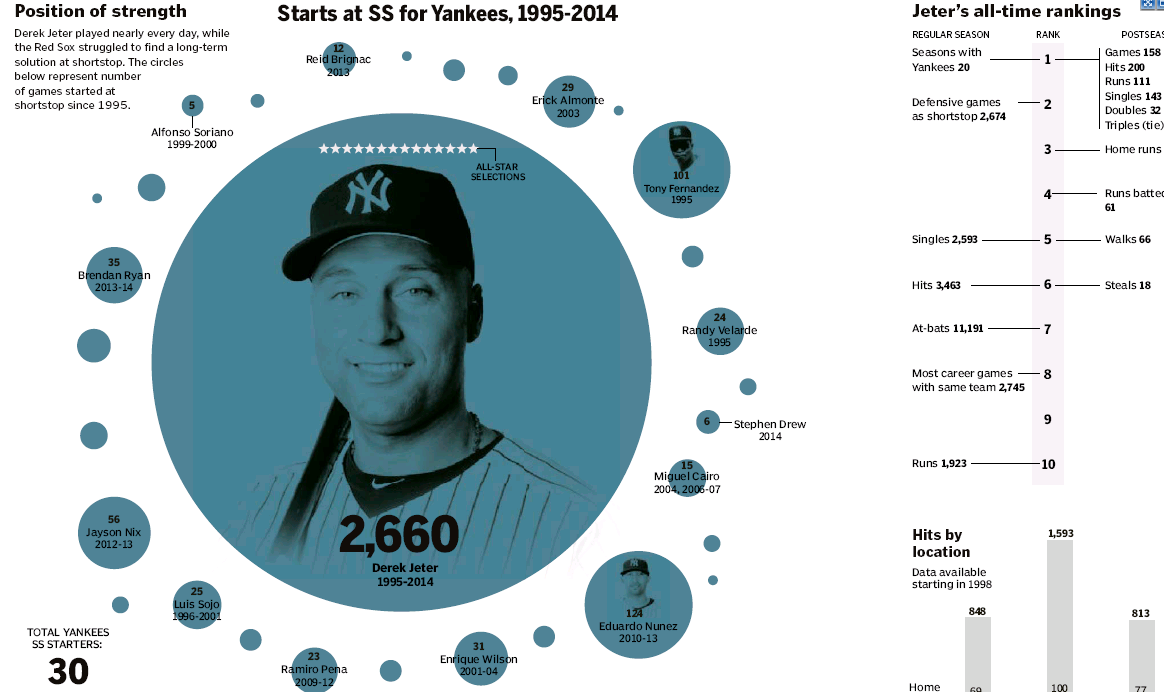 From the Boston Globe, it’s a bouquet of stats – Jeter’s career relative to the Red Sox. (On the web here, but graphics not really working.)