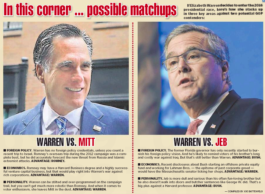 (Columnist Joe Battenfeld piles on with this piece, in which he speculates that Joe K 3.0 “may help derail Clinton’s White House path by endorsing her potential 2016 opponent, U.S. Sen. Elizabeth Warren, much the same way the late U.S. Sen. Ted Kennedy backed Barack Obama in 2008.”)