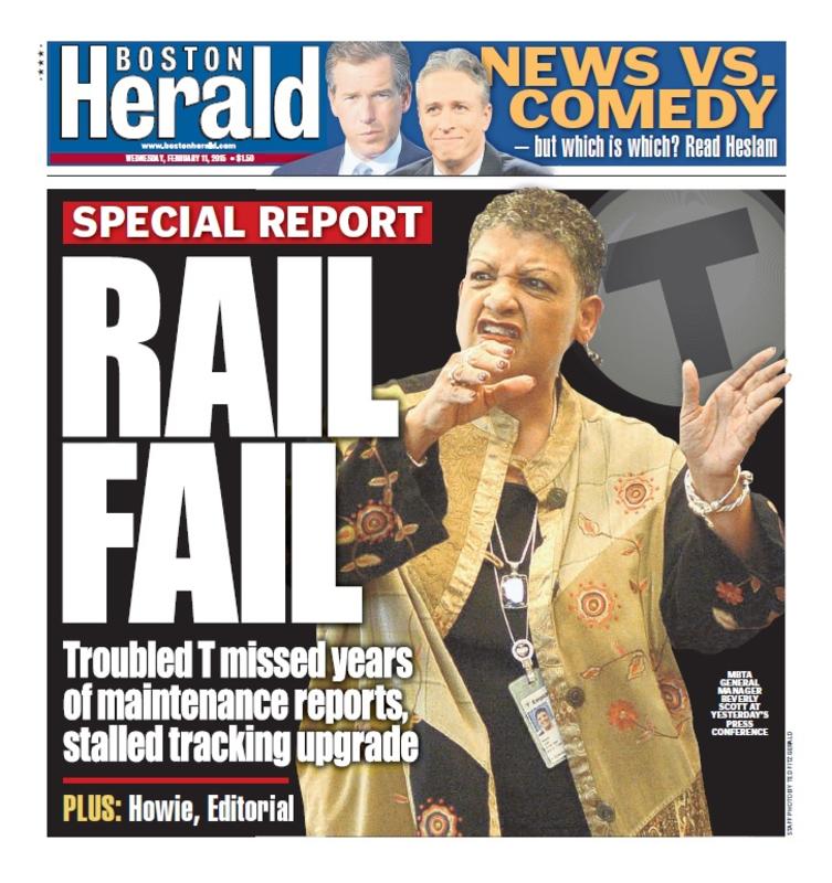 The hardreading staff was asleep at the switch (a common problem at the MBTA, right behind atexting at the wheel) regarding the Boston Herald’s front page yesterday.