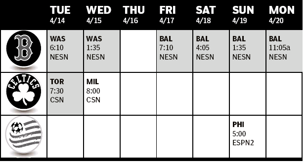 weekly sports calendar? the celtics are done, the bruins are done, the revs play what,1 game a week? we don’t need a calendar, we need Tank McNamara! Bring him back pleeease.