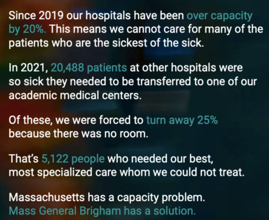 Okay – so according to Mass General Brigham, demand has outstripped supply at the hospital for the past three years.