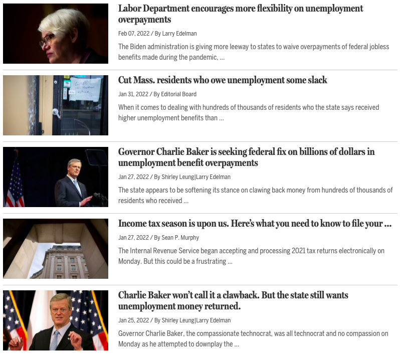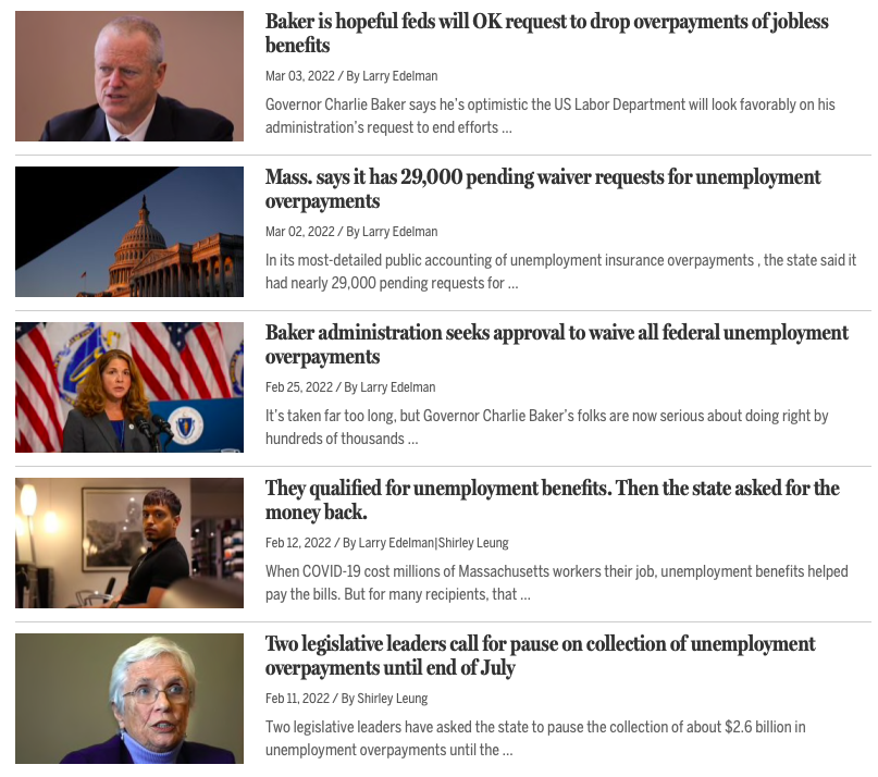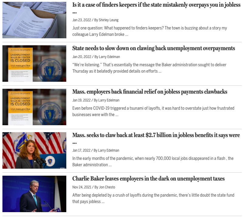 During the past few months, the flimsy local tabloid has all but ignored U.S. Labor Department efforts to recover about $2.7 billion in overpayments of federal pandemic jobless benefits to Bay State residents.