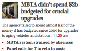 Maybe because the Boston Herald did its own review of MBTA employee absences a week ago, the Little Tabloid That Could featured this on Page One instead: