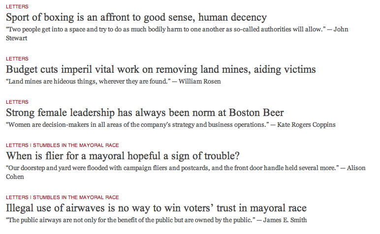 For starters, the Sunday Globe Ideas section featured numerous Letters to the Editor about the poultry rumpus. Representative sample: