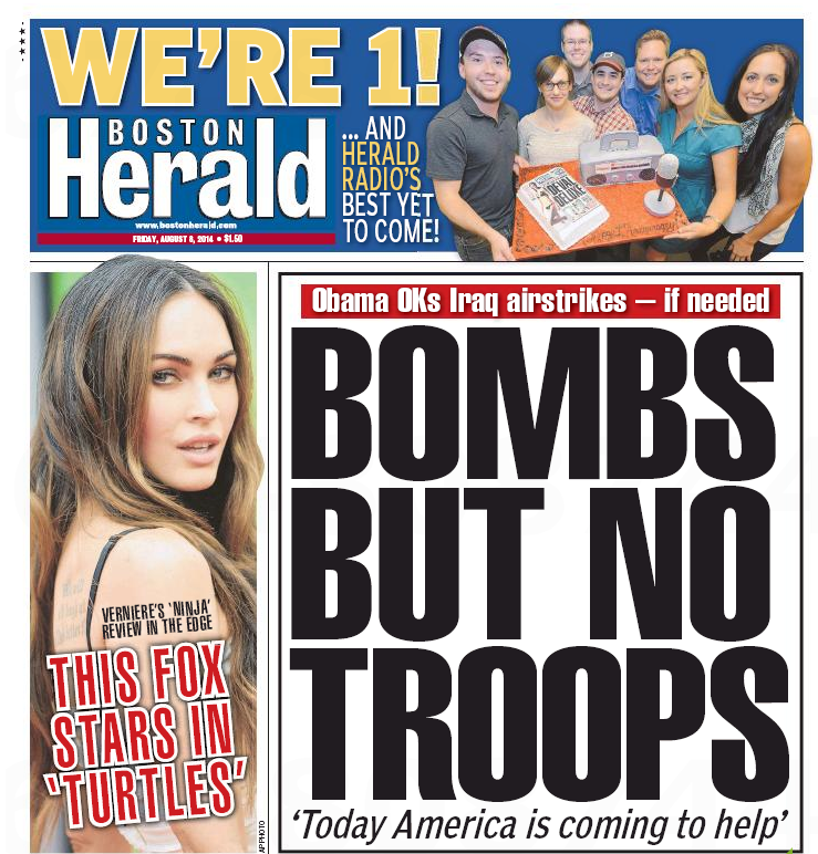Of course, everything is different in the Boston Herald. Top of Page One: