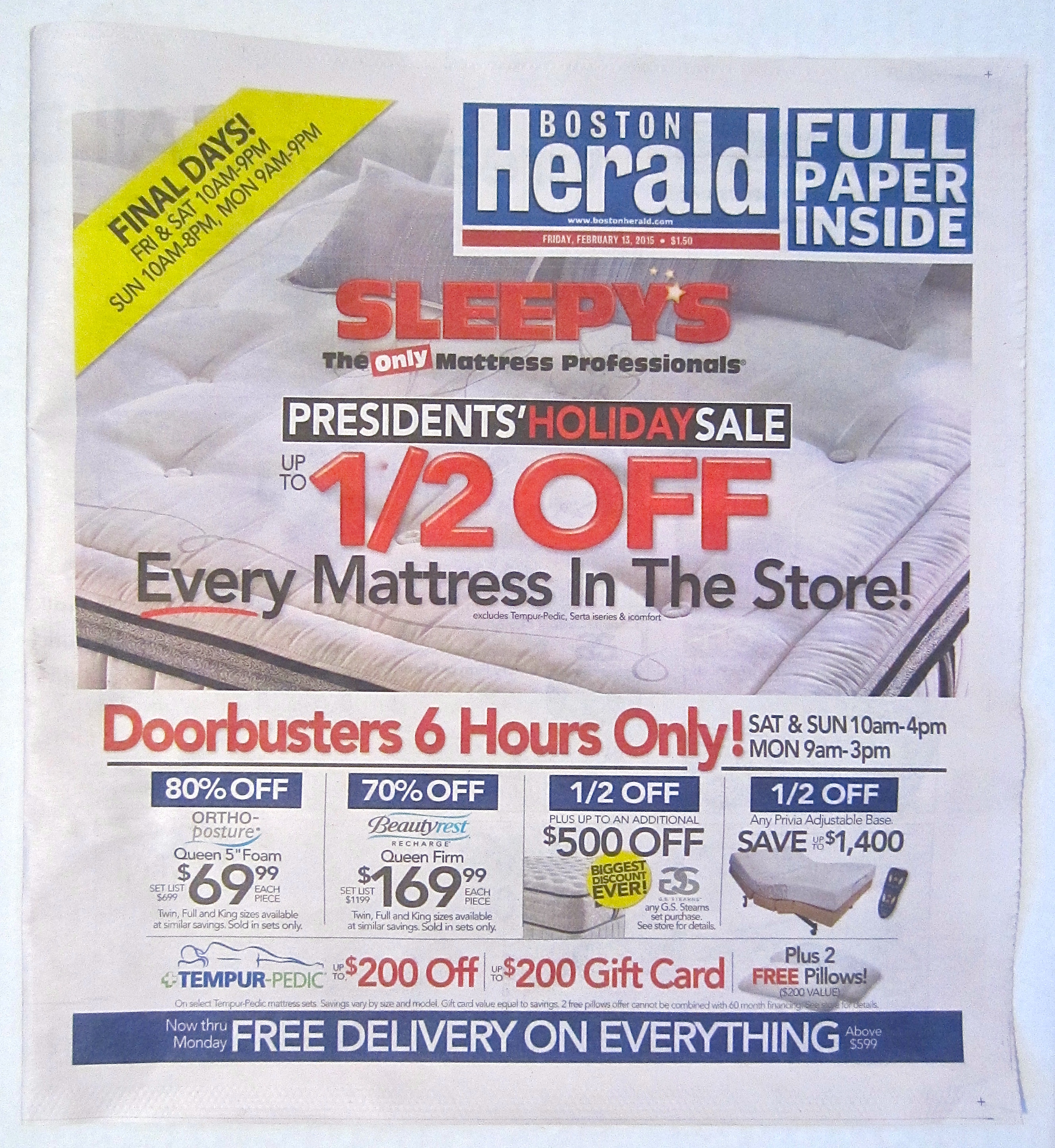 Sunday’s papers were a Papipalooza of congratulatory ads, with both the Boston Globe and the Boston Herald publishing special Commemorative Sections.