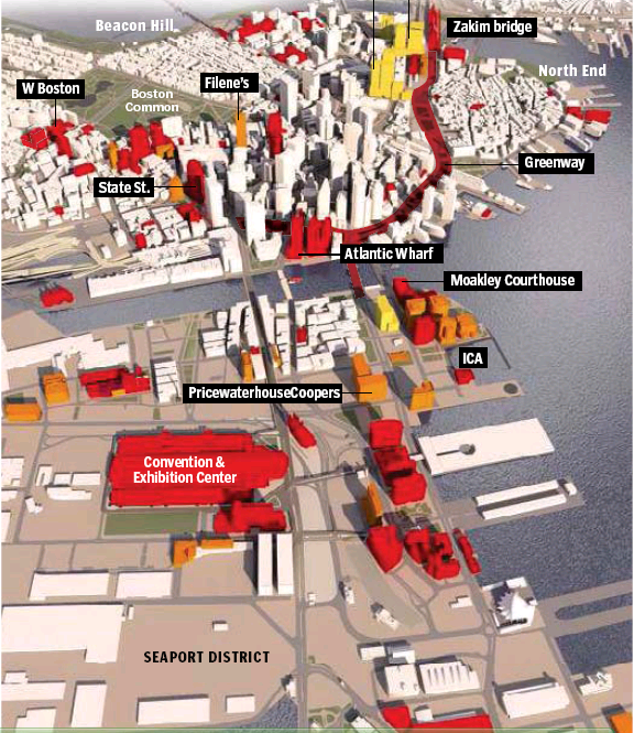 a crawl, retailers were struggling, and the elevated Central Artery still spewed exhaust onto a waterfront that was more gritty than glitzy.